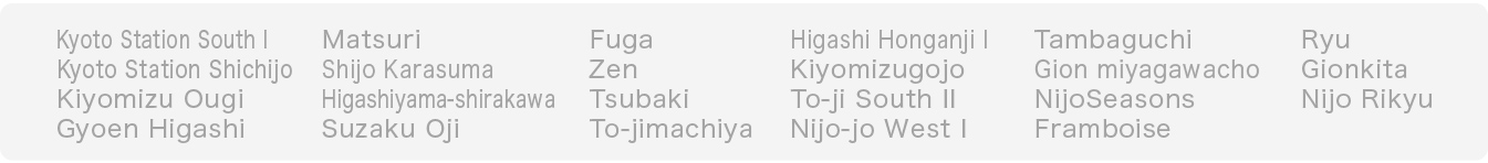 We operate a diverse range of accommodation facilities, centered primarily in Tokyo, Kyoto, and Miyakojima Island.